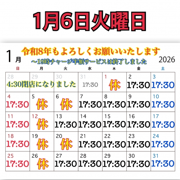 #1月より4時30分閉店