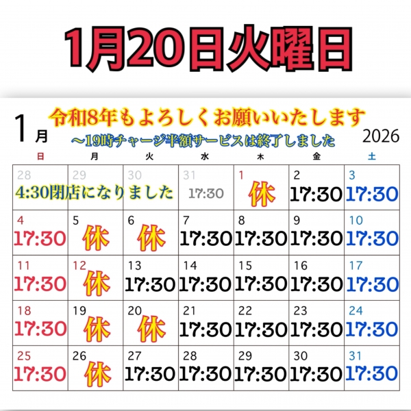 #1月より4時30分閉店